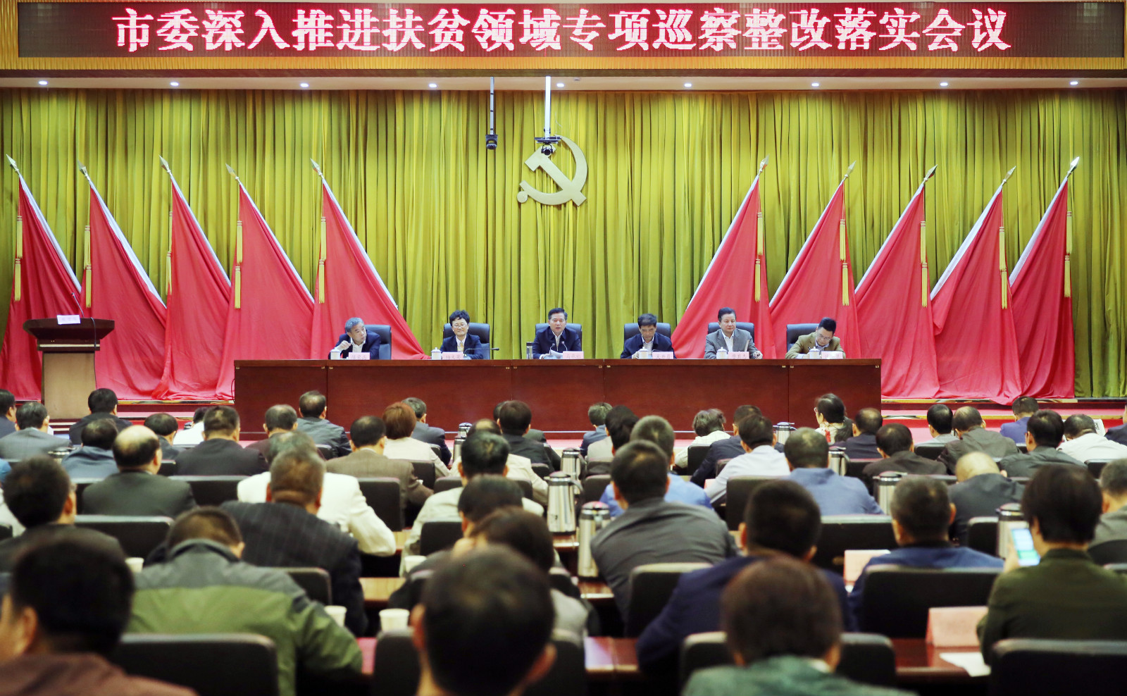 市委副书记吴井勇主持,市委常委、市纪委书记、市委巡察工作领导小组组长杨文英通报了全市扶贫领域专项巡察情况;市委常委、常务副市长廖其志,市委常委、政法委书记陈荣高,市政协副主席张保卫出席。