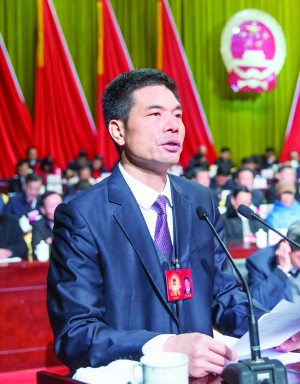 代市长谢来发作政府工作报告。记者 徐斌 摄