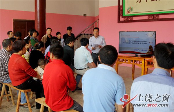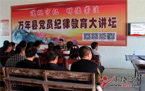 万年县上坊乡高墩村啄木鸟孙珂伟在纪律大讲坛给农村党员解读《廉洁自律准则》和《纪律处分条例》